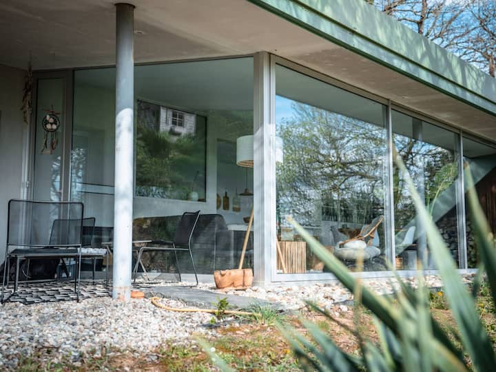 Во срцето на зелен амбиент каде што природата владее како неоспорна љубовница, откријте ја Horizon P'y, нетипична вила која хармонично се вклопува во својата шумска средина, нудејќи рај на мирот за оние кои бараат прекрасно бегство во природа. Ова уникатно живеалиште, со своите големи заливски прозорци, ја отвора дневната соба кон надвор, капејќи ја секоја соба во природна светлина и нудејќи неверојатен поглед на околниот пејзаж, зелените долини и далечните силуети.