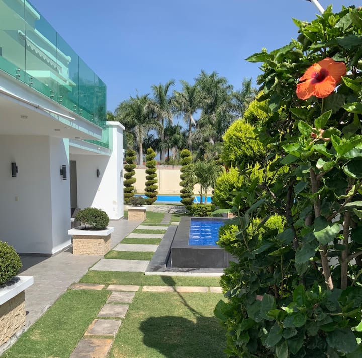модерна куќа со прекрасен базен многу убав