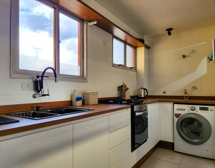 Овој целосен стан нуди сѐ што ви е потребно за удобен и удобен семеен престој: