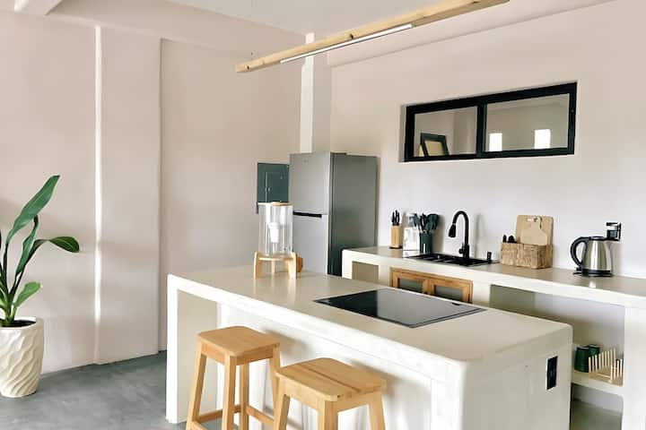Разбудете се од звукот на брановите и спектакуларните пацифички изгрејсонца во ова првокласно поткровје со поглед на океанот од 65 квадратни метри, на само неколку чекори од плажата Зикатела. Создадено за удобност, приватност и стил, тоа е совршено место за одмор за парови или самостојни патници.
