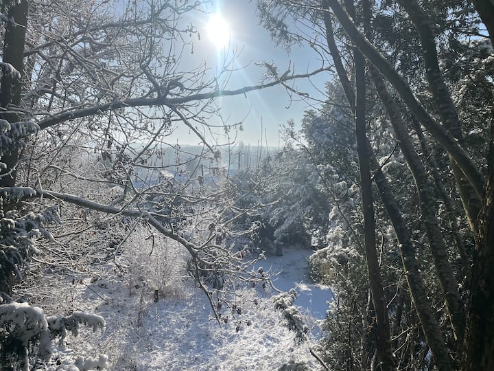 На 3 км од Живерни, а со тоа и од Градините и куќата на Клод Моне, како и од извонредниот замок Троглодит во Ла Рошфуколд во Ла Рош Гијон, под ридот, во подножјето на шумски парк од 3 хектари, дојдете и престојувајте неколку дена (и уживајте во базенот и можеби во спа-центарот) во живеалиштето во близина на замокот Сен Женевиев, шармантна камена куќа неодамна реновирана и во подножјето на карпите Чалк, типични за регионот Живерноаз.