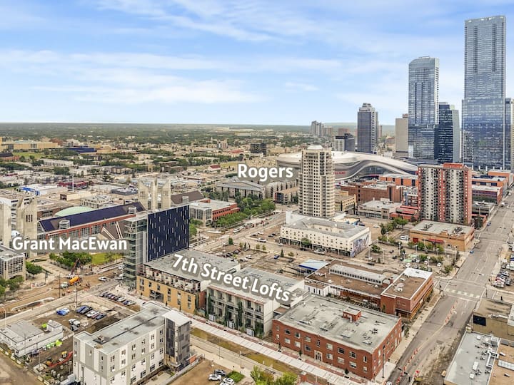 ДОБРЕ ДОЈДОВТЕ ВО НАШЕТО ЕЛЕГАНТНО УРБАНО СКЛАДИШТЕ, лоцирано во срцето на Едмонтон! На неколку чекори од ОБЛАСТА НА МРАЗОТ и Роџерс Плејс, Грант Мекјуан, трговскиот центар Сити Центар, музејот Ројал Алберта, уметнички галерии, ресторани и сѐ што може да понуди центарот на градот. Лесен пристап до U of A, WEM и стадионот на Комонвелт. Во градот за бизнис или за задоволство? Нашето стилско поткровје нуди совршено место за одмор. Бесплатен подземен паркинг! Клима уред од мај до октомври! Искусете го најдоброто од урбаниот живот!