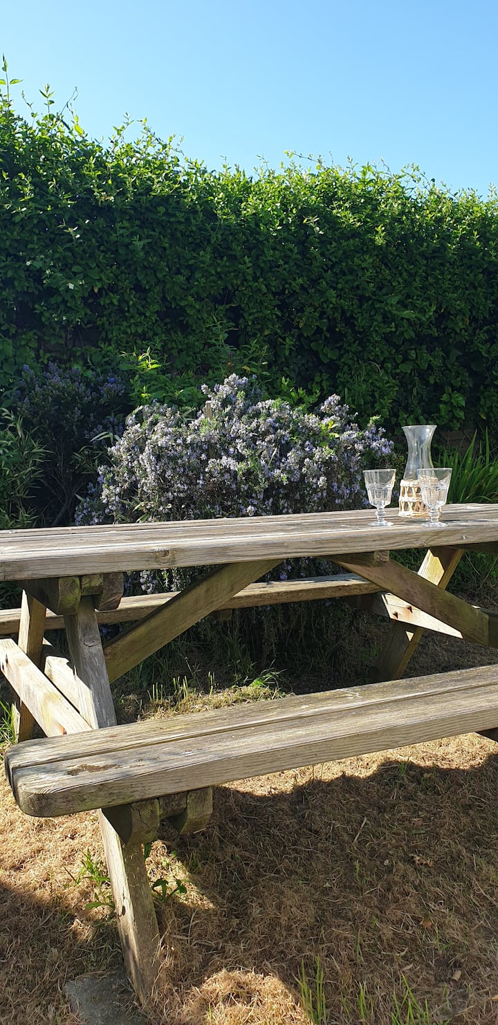 - Сместувања за изнајмување со простор за седење на отворено за одмор во Manche