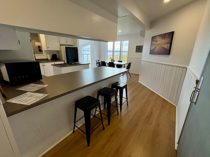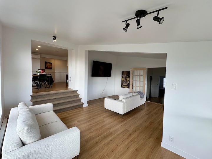 Здраво, нудиме стан на Airbnb во кој изнајмувате само една или две или 3 или 4 спални соби за да имате пристап до целиот реновиран стан на врвот на комерцијална зграда. Одличен поглед на реката Сент Лоренс!