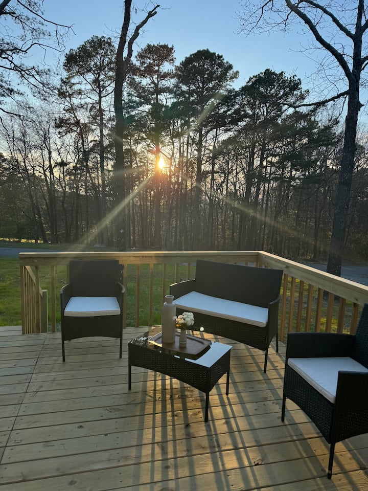- Сместувања за изнајмување со простор за седење на отворено за одмор во Арканзас