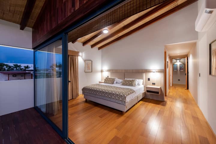 Бегајте во рајот во нашиот сосема нов, луксузен дом на плажа во Пунта Сал! Совршен за семејства кои бараат луксузен одмор, овој сосема нов имот може да се пофали со доволно простор за до 17 гости. Излезете на просторната тераса за да се потопите во неверојатен поглед на океанот или да се освежите во базенот со поглед на беспрекорните песоци. Со директен пристап до плажа, може да ги поминете деновите лежејќи на брегот или истражувајќи го океанот. Уживајте во најдоброто место за одмор на плажа во нашиот рај Пунта Сал!