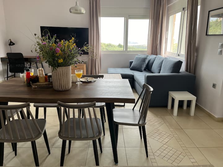 двокатна вила со површина од 200 квадратни метри. Вилата има 4 спални соби, 2 бањи, 1 w.c., како и дневна соба и комплетно опремена кујна. Обезбедени се и базен и опрема за скара. Дизајнот е идеален за семејства или групи пријатели бидејќи истовремено нуди приватност и интимност! Вилата обезбедува удобно сместување за до 8 лица, а нејзината прекрасна положба нуди неверојатен поглед на море од речиси секаде каде што ќе застанете!