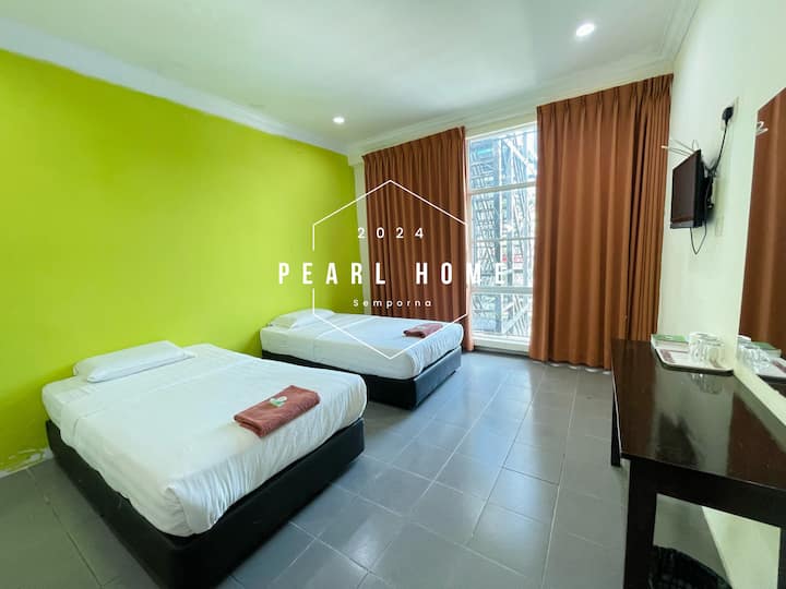 Semporna Pearl Hotel Двоен кревет (поглед кон градот) Француски прозорци, сопствена бања 25 м2, во градот Семпорна, во соседството на Фејма, кинески сопственик
