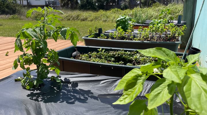 - Сместувања за изнајмување со простор за седење на отворено за одмор во Дофин Ајленд