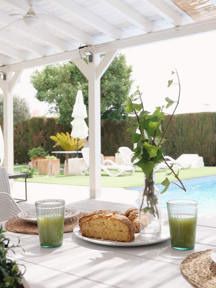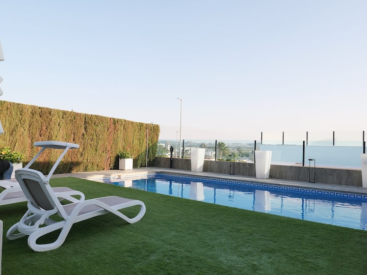 Вила со базен со греење во близина на морето