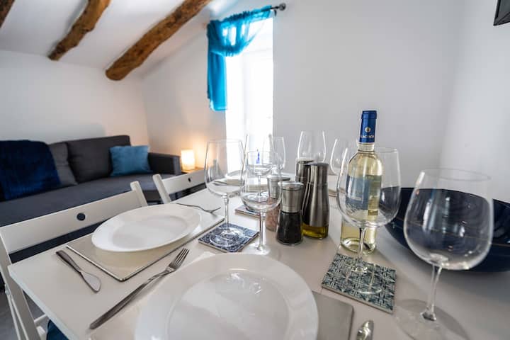 Азул – овој стан на првиот кат има свој влез од заеднички двор. Скалите водат до пространиот салон/трпезарија/кујнски простор. Има комплетно опремена кујна, удобен кауч на спуштање со карпи, телевизор на ѕид, тавански вентилатор и клима уред.
