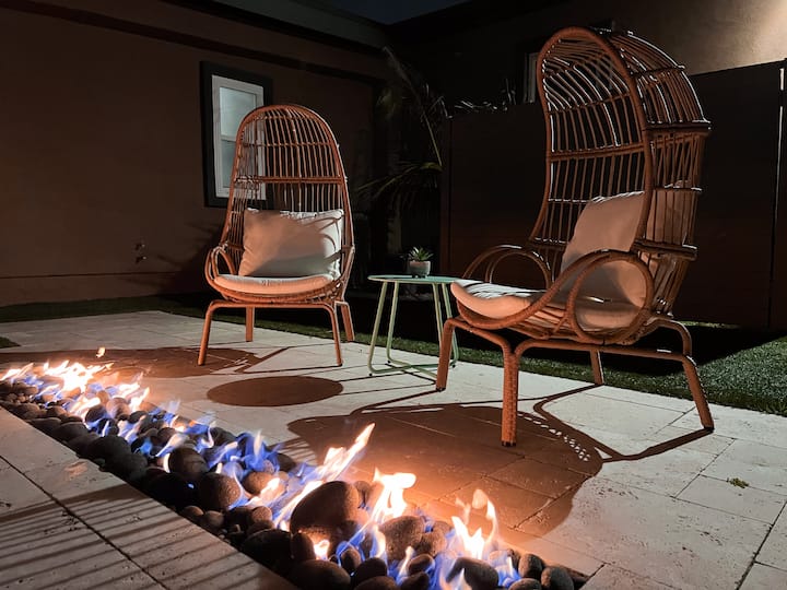- Сместувања за изнајмување со простор за седење на отворено за одмор во Orange County