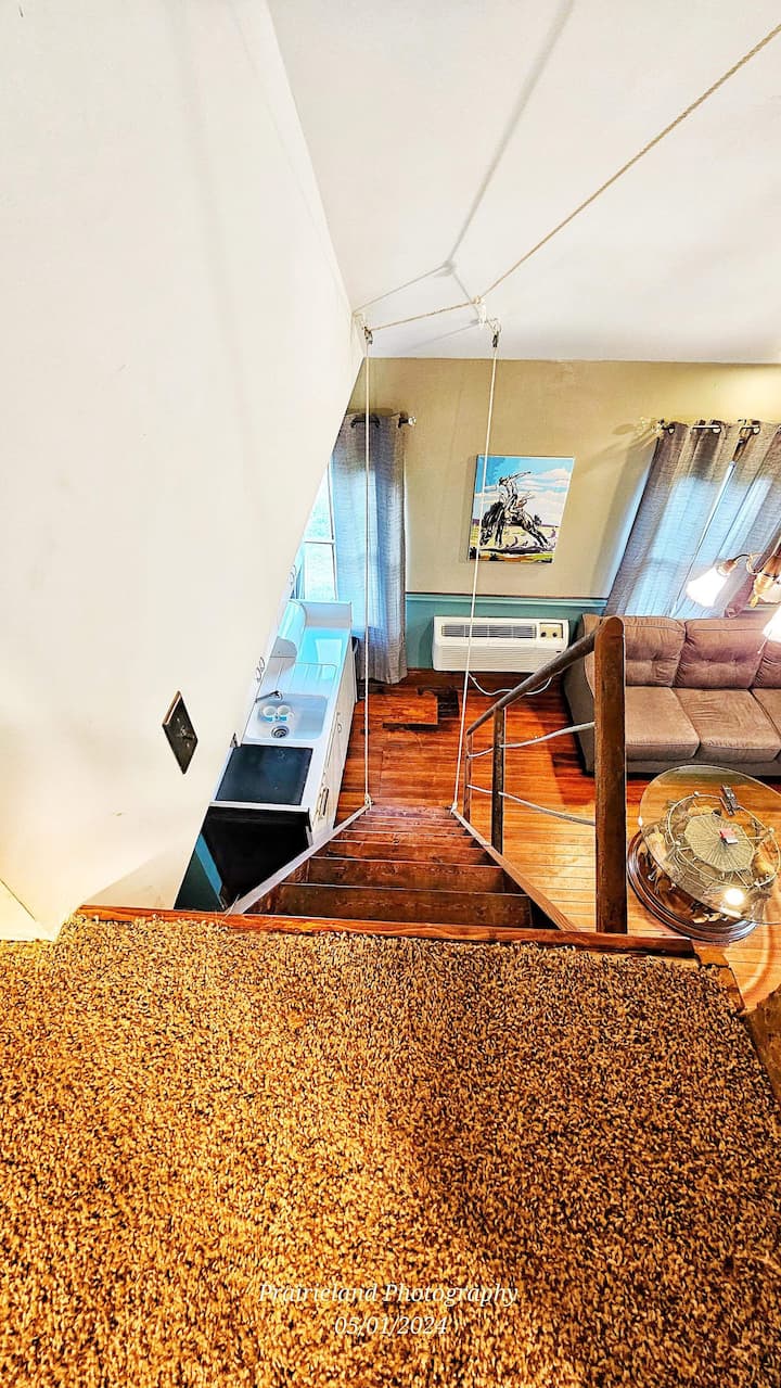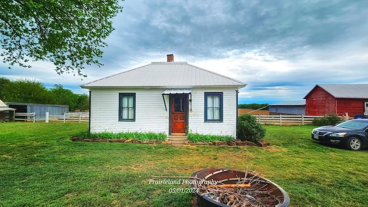 Тивко сместување во село во близина на I-70 со игралиште и без надоместок за миленичиња! Ви посакуваме добредојде во нашата рехабилитирана гостинска куќа од 1906 година со модерни удобности на фарма од 10 хектари. Дупли кревет, брачен кревет (широк 150-179 см), кауч, футон во поткровје. Нова бања со плочки со туш и стапче, кујничка, кафе-станица, плоча, CD и касетофон, игри, пакувања, пегла и штица, паметен телевизор, задна тераса, златна рипка во резервоар за хранење, коњи и добиток и мачки на фарма. МИЛЕНИЧИЊАТА МОРА ДА БИДАТ ЗАТВОРЕНИ КОГА НЕ СЕ ПРИСУТНИ