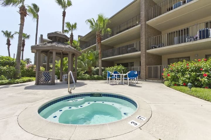 Padre Oasis #302 е простран кондоминиум со 2 кревета/ 2 бањи со голем поплочен двор со поглед на базен и хидромасажна када со скара.