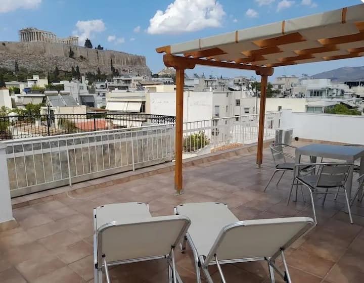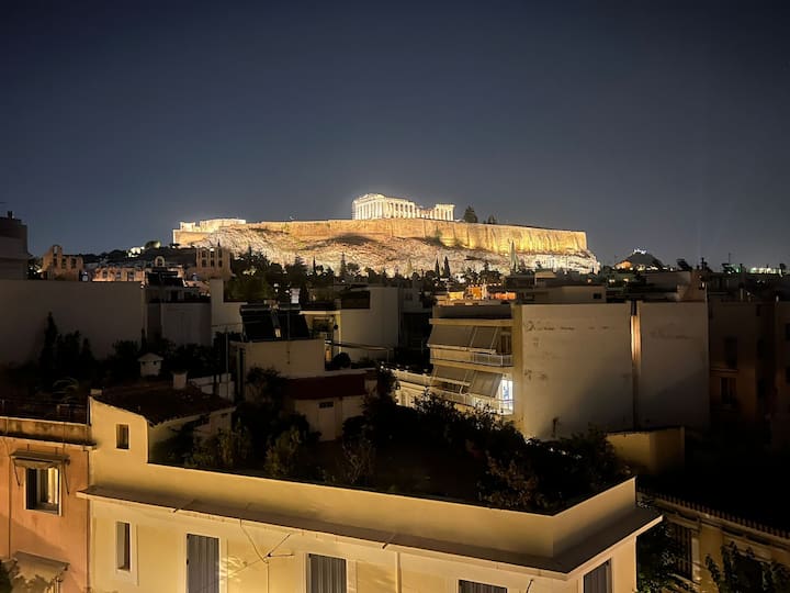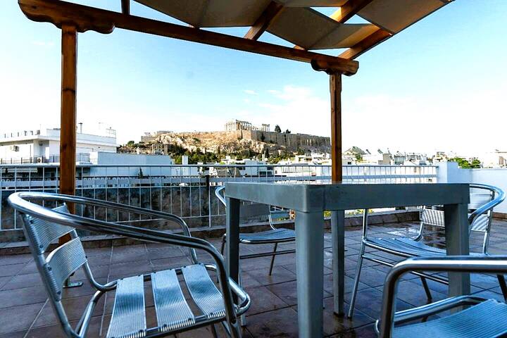 Поглед кон Акропол, Атина: удобно и симпатично студио на покрив