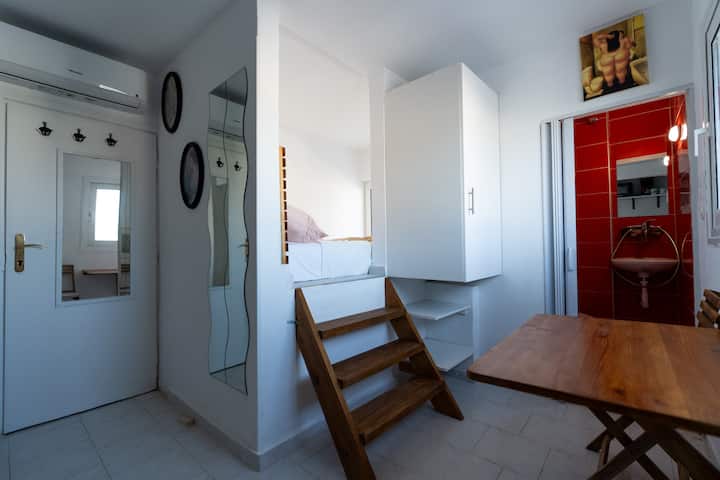 Тоа е студиото на татко ми, но сестра ми и јас го поддржуваме нашето мало скапоцено место. Внатре е прилично мала, но сметаме дека погледот, масивната приватна тераса и локацијата се ненадминливи по таква цена. Внатрешниот туш е мал, но гостите го обожаваат нашиот надворешен туш. Сакаме да угостуваме убави луѓе и да го споделуваме овој подарок од доживувањето. Многу од нашите гости создадоа извонредни спомени тука, како што се предлози за свадби и моменти на чист спокој.