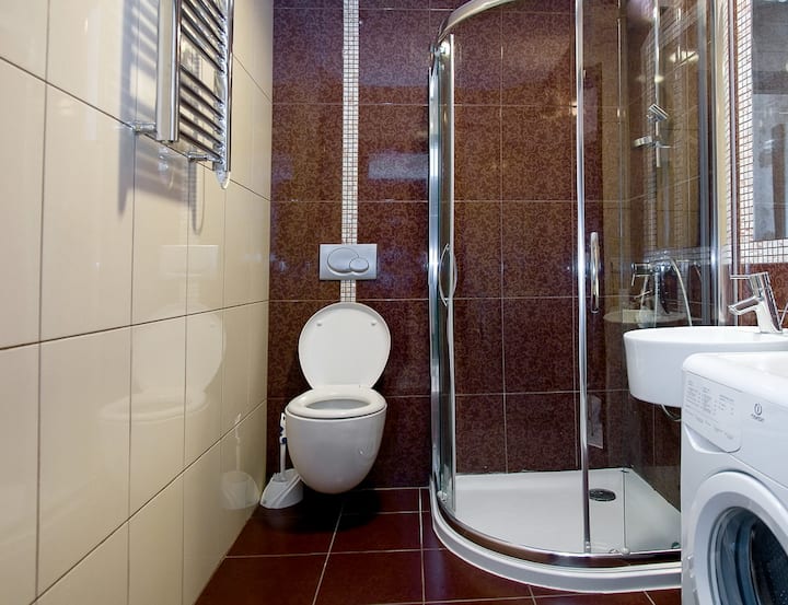 Удобна двокреветна соба со поглед на улица и туш