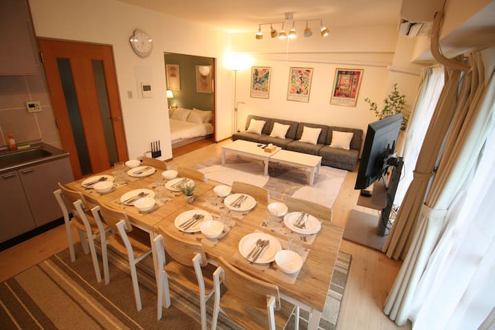 До 8 лица 65 м2/Дотонбори, станица Нипомбаши, пазар Куромон, Шинсаибаши на пешачко растојание/прекривка за хотелски кревет, употреба на крпи