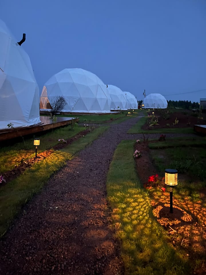 Нашите 7 геодетски куполи се наоѓаат во резортот Рустико каде што гостите можат да играат голф на нашиот терен со 18 дупки, да вечераат во прекрасниот ресторан DHALIA на самото место, да шетаат по нашиот брег, кајак, велосипед, да пливаат.