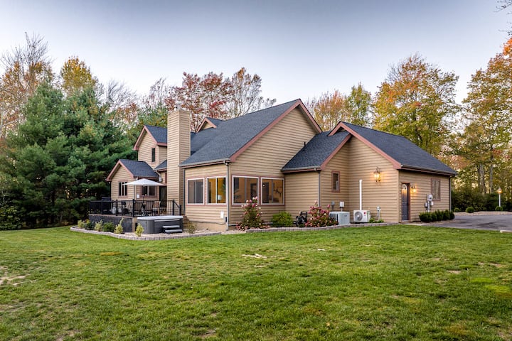 Оваа пространа викендичка на планините Поконо е совршено место за одмор за семејството и пријателите. Влезете во спокојството на езерото Хармонија со елегантен декор и пријатен камин. Уживајте во доволно природна светлина која струи во оваа голема дневна соба од удобноста на нашите удобни столчиња за јајца и преголемиот дел! Неверојатниот план на отворениот кат им овозможува на нашите експерти во кујната никогаш да не ја пропуштат забавата кога го готват следното вкусно уживање за вашите гости во нашата пространа, целосно опремена кујна! Собата за сончање нуди дополнителна релаксација и работен простор, додека собата за игри, опремена со хокеј на воздух, кошарка и игри на табла, ветува забава. Опуштете се во дневната соба со камин и паметен телевизор или одете во собата за игри за забава! Каква и да е прилика, во овој дом има сѐ што ви е потребно за да се опуштите и да се наполните со стил!