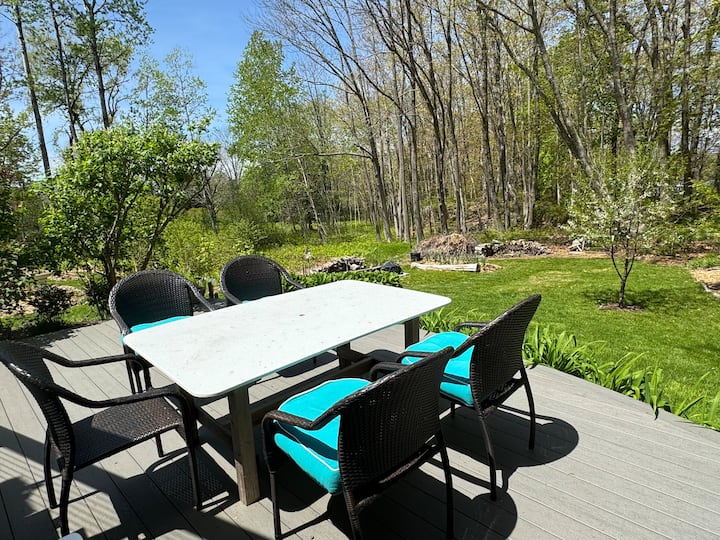 - Сместувања за изнајмување со простор за седење на отворено за одмор во Мејн