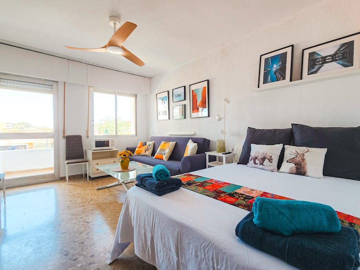 Студио со поглед кон небото во Торемолинос со базен