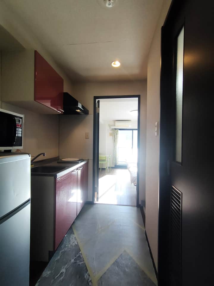 Гостинската соба од 26 квадратни метри е опремена со спална соба, бања, мијалник и тоалет. Има греалка за готвење IH со прибор за готвење и прибор за јадење. Можете да ги готвите оброците. Има и машина за перење алишта.