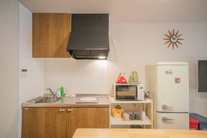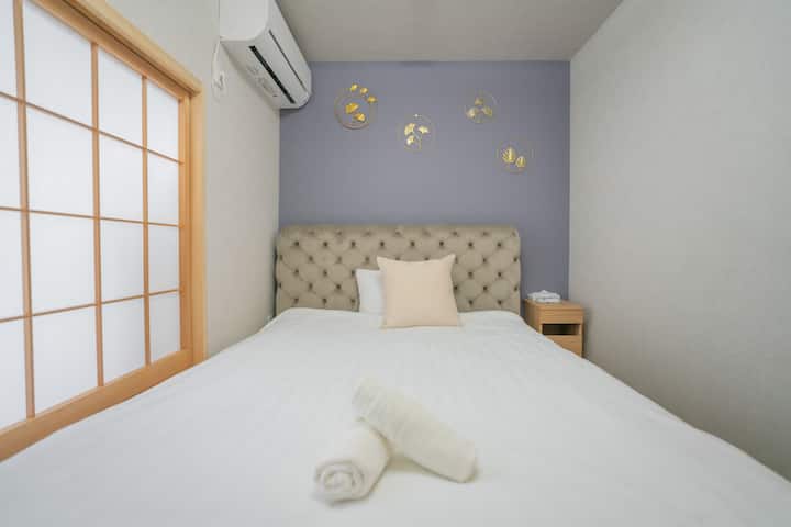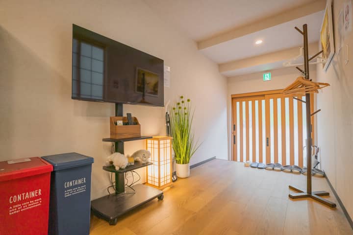 Ова е приватно сместување во јапонски стил лоцирано во Чуо Вард, со вкупна површина од 41 квадратен метар. Опремен е со комплетна бања и целосно автоматска када во јапонски стил, со две спални соби и чајџилница/спална соба. Една спална соба има двоен кревет и две татами соби, во кои може да се сместат до 6 гости. Сместувањето вклучува електронски кујнски апарати и јапонски комплети за чај. Обезбедуваме постелнина и средства за лична хигиена со хотелски квалитет, а сите крпи и опрема се дезинфицирани на високи температури за да бидете спокојни.