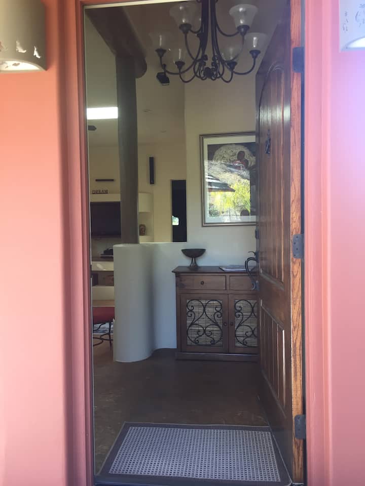 За гостите кои престојуваат во апартманот Corazón Courtyard Suite, од патеката следете ја патеката што поминува низ затворениот простор во дворот и дворот на главната куќа, каде што имате посебен влез во вашиот апартман. Бидете претпазливи да ја држите портата затворена и заклучена за да го задржите локалниот див свет подалеку од оваа област (елени, којоти).