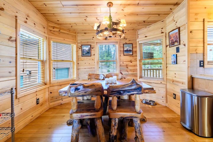 Чувствувајте се на врвот на светот во оваа дрвена колиба со неверојатен поглед и простор за целото семејство. 3200 квадратни стапки на две нивоа нуди три спални соби, отворен концепт на главни простори за собирање и огромна игротека со маса за билјард и шафлборд. Опуштете се во надворешната хидромасажна када или покрај огништето на плин и гледајте на врвови од 14 000 стапки. Повеќе хектари обезбедуваат приватност од сите. 45 мин. до Брекенриџ, 30 минути до Буена Виста. Лесен пристап до сите зимски активности. Дозволено е едно или две кучиња! Starlink wifi.