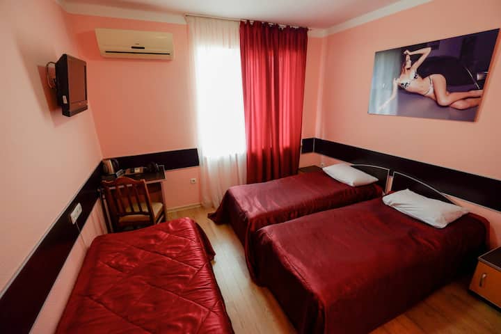 Дрвен под, ортопедски душеци, клима уред, LCD телевизор, удобна бања – сѐ ова во секоја соба во нашиот хотел „АУТОПАПА“.