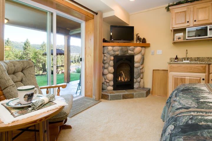 Живеевме во Пацифичкиот северозапад цел живот, а TED се одгледува во Сиетл, а Сенди се одгледува во областа Линвуд. Почнавме да доаѓаме во Левенворт кога се сретнавме пред 35 години и ни се допадна областа. Отсекогаш сме биле привлечени од сонцето и разновидноста на активностите. Затоа, го купивме нашиот имот на реката и одлучивме да изградиме Б и Б. Сакаме да ја споделуваме убавината на оваа област со сите наши гости и со нетрпение го очекуваме вашето пристигнување!