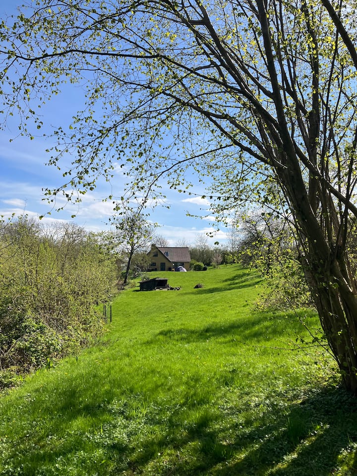 Прекрасна куќа во овоштарник со оган и засолништа