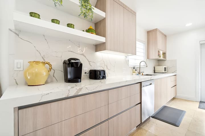 Основни удобности ✔ за готвење, вклучувајќи машина за кафе, блендер и тостер
