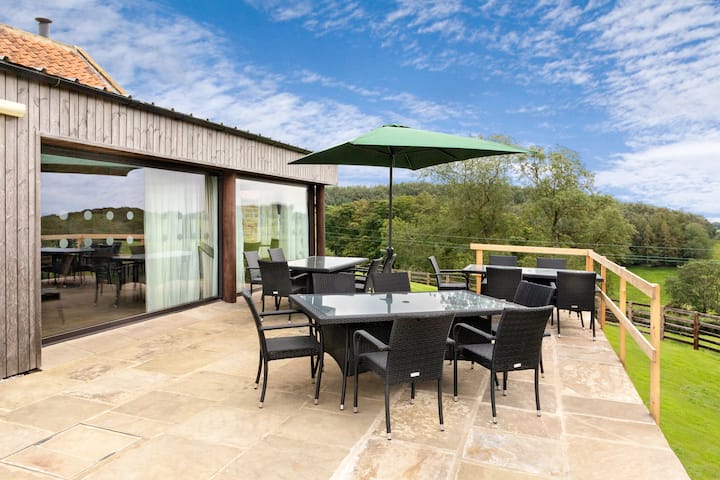 - Сместувања за изнајмување со простор за седење на отворено за одмор во Yorkshire