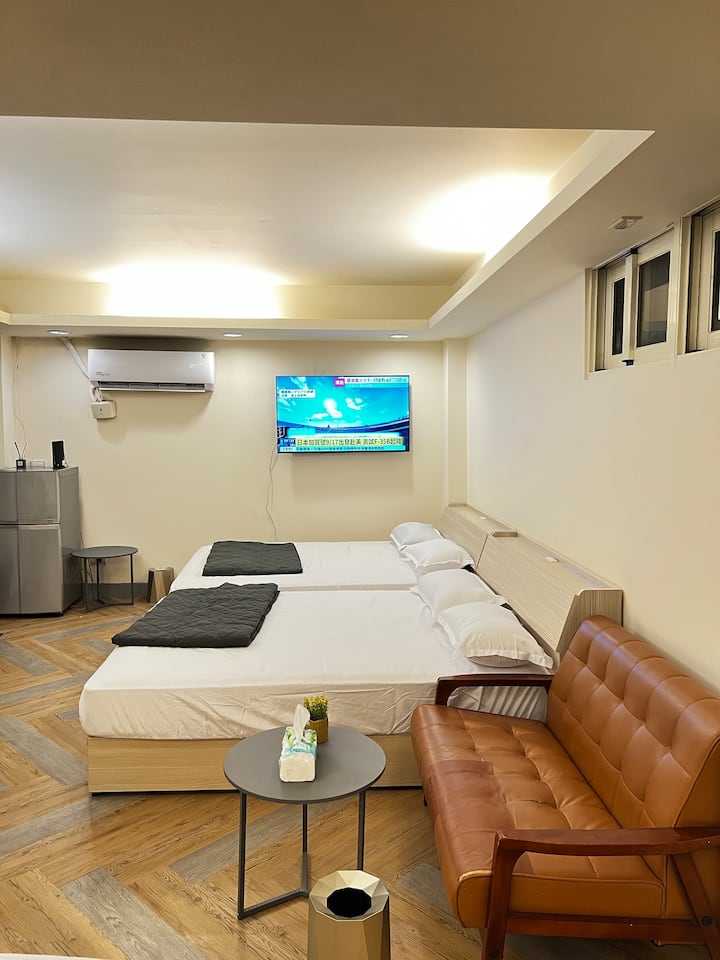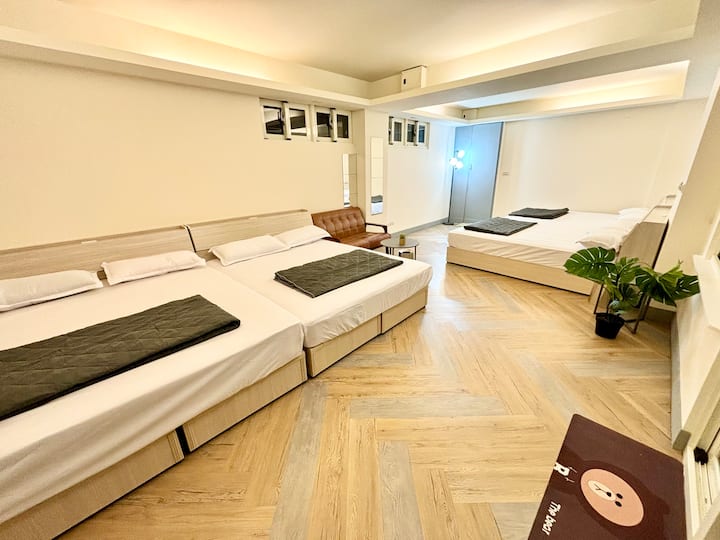 Тајпеј Ximending (соба за 4-8 лица) Цел кат голем простор/гурманска деловна област/кујна/машина за перење алишта/голем светлосен прозорец/Во близина на супермаркет, ресторан, деловна област