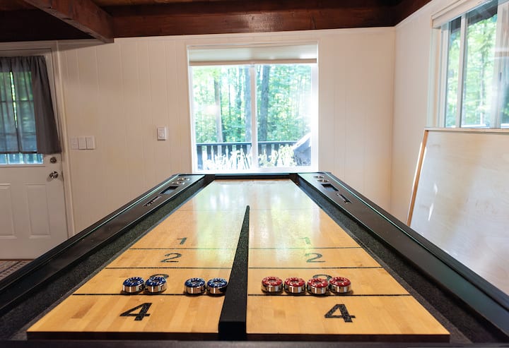 Искусете совршено семејно патување во одморалиштето Шанти Крик, сместено во шумски предел. По активностите на отворено, вратете се дома во модерни удобности, вклучувајќи приватна сауна, хидромасажна када и пријатен ентериер. Играјте шафлборд, печете машмелоу околу огништето, пливајте во базенот на одморалиштето и опуштете се со саканите!