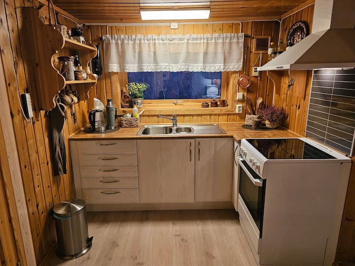 Сауна, туш и надворешен тоалет. Во предворјето на сауната има шпорет на таблата, но ви препорачуваме да пукате во сауната за да ја добиете вистинската топлина во предворјето каде што е тушот.