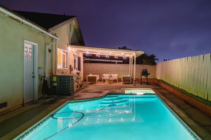 4 BR Pool Home + Соба за игри + поплочен двор + скара
