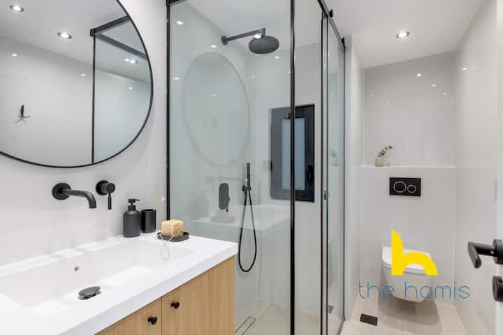 Влезете во удобноста на овој сосема нов стан на 5-ти кат, дел од автономна зграда дизајнирана со прецизно внимание на деталите. Уживајте во приватноста на цел кат само за вас, 2 спални соби, целосно опремена кујна, удобна дневна соба со кауч и електричен камин, како и мирен поплочен двор. Со брз Wi-Fi, Netflix и контрола на климата во текот на целиот престој, секој момент од вашиот престој е прилагоден на вашата удобност и релаксација. Метрото е оддалечено само 6 минути пешачење.