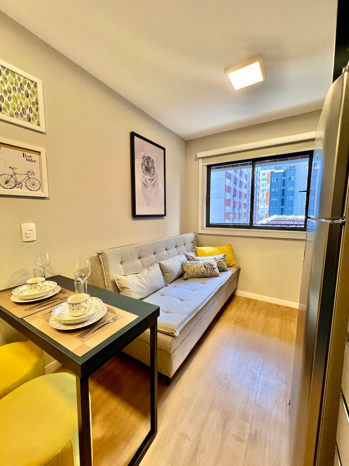 Добре дојдовте во удобните сместувања на Lins. Се наоѓаме на една од најдобрите локации во Куритиба, во близина на сѐ: барови, ресторани, болницата Pequeno Príncipe, FAE и туристички атракции. Сѐ беше смислено за да се донесе практичност и топлина, со планиран мебел, кујна опремена со потребниот прибор. Телевизор, топол и ладен воздух. Удобен кревет, кауч на спуштање, постелнина и постелнина за бањање. Зградата има сала за вежбање, пералница и простор за багаж за пријавување и одјавување. Ќе ми биде задоволство да ви посакам добредојде.