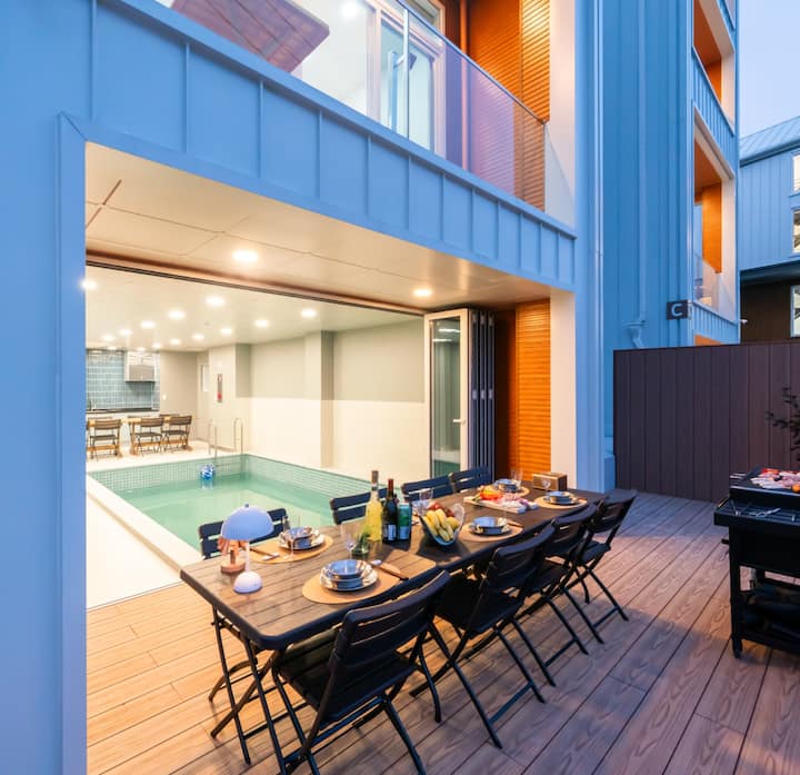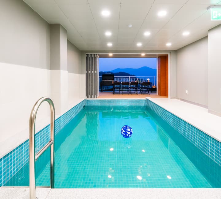 Првиот кат од сите соби се состои од внатрешен греен базен за четири сезони и зона за скара покрај базенот. Тоа е место каде што можете да се забавувате во вода и да правите скара.