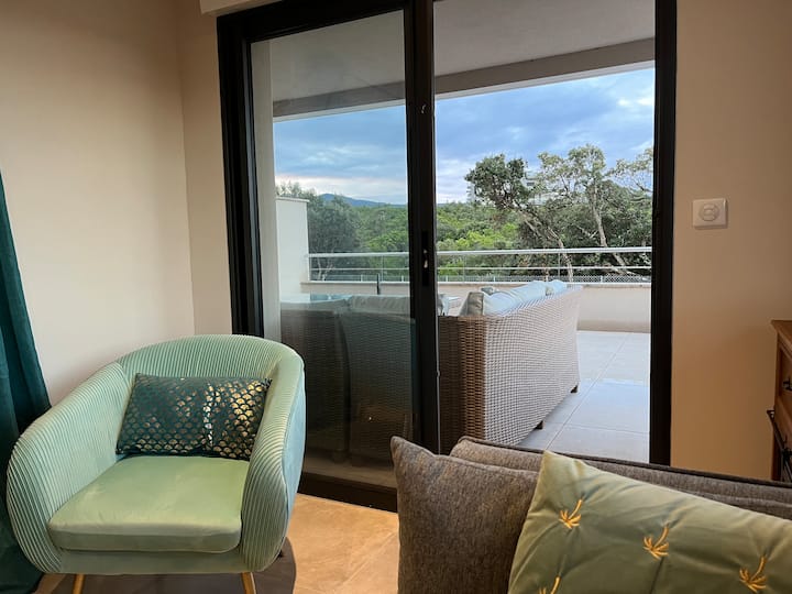 - Сместувања за изнајмување со простор за седење на отворено за одмор во Corse-du-Sud