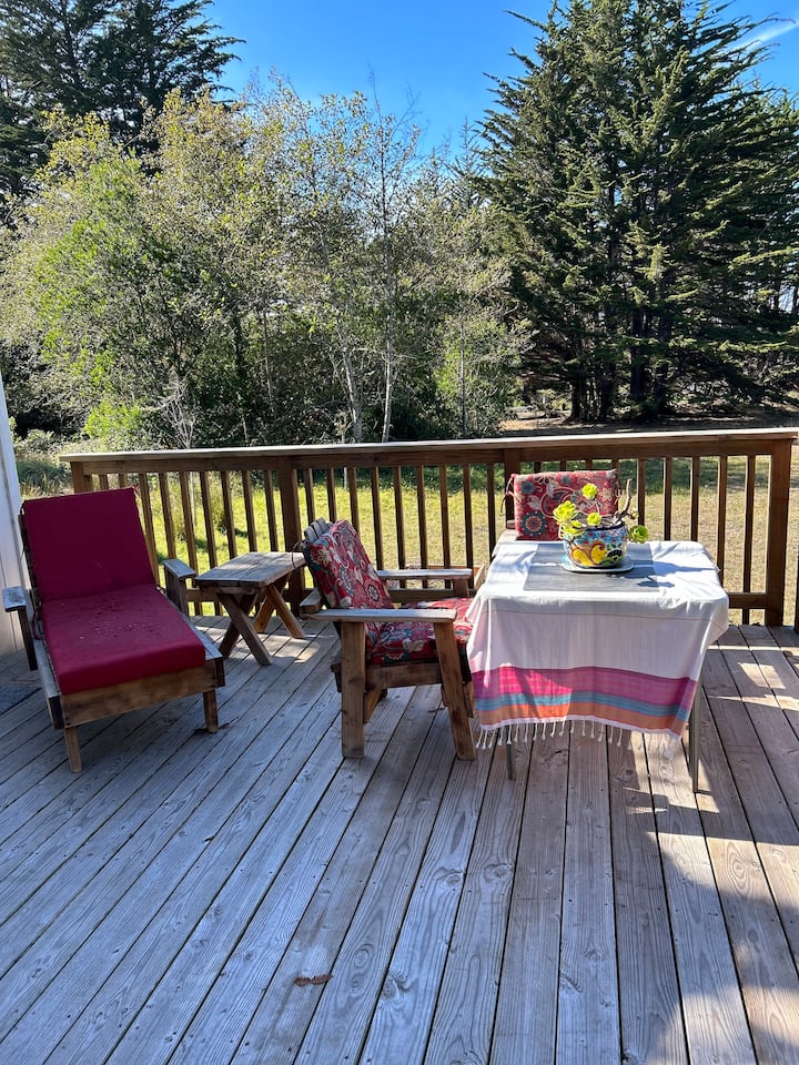 - Сместувања за изнајмување со простор за седење на отворено за одмор во Мендосино