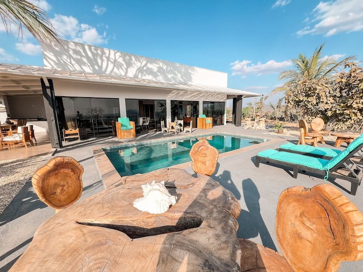 Вие и вашите гости ќе бидете пречекани со љубов. Куќата е шармантен, елегантно опремен простор со мебел и предмети увезени од САД, внимателно украсен со вкус и стил. Големата дневна соба интегрира гурманска кујна, опремена со импресивен 4-метарски остров, совршен за моменти на дружење. Уживајте во гурманскиот простор со базен за соларно греење и скара. За моменти на релаксација, просторот за логорскиот оган нуди пријатна атмосфера со неверојатен поглед кон зајдисонцето.