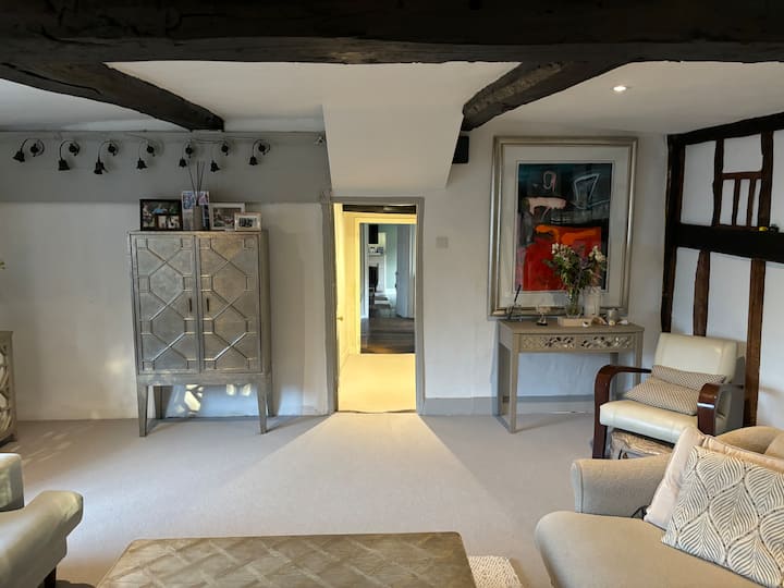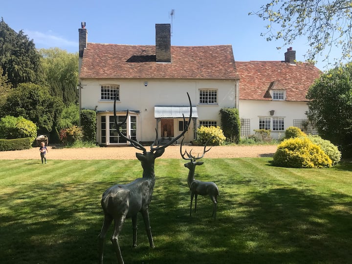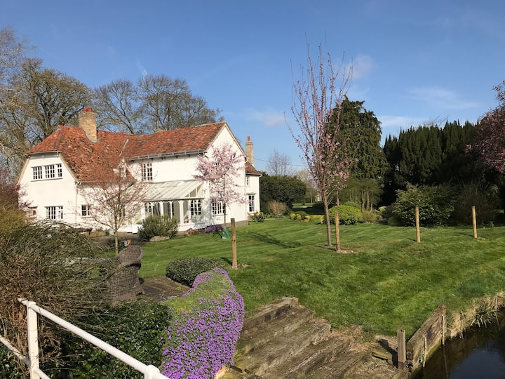 Нашата голема одвоена куќа на фарма со 5 кревети е сместена на изолирано место по широка патека во четири хектари градина со предна страна на реката. Куќата има фантастичен простор за пошироки семејства или две семејства кои делат. Ова е нашиот дом и нуди сѐ што ќе ви биде потребно за фантастичен престој. Централен Кембриџ се наоѓа на петнаесет минути возење или десет минути возење со воз од локалната станица во Витлсфорд. Има автобуска станица на две минути пешачење со автобуси до Кембриџ и историскиот пазарен град Сафрон Валден (и двата се приближно 30 минути со автобус). Нашите пространи градини имаат хидромасажна када, речен мост, формални градини со маникир, шумски предели, тераса на река и простор за играње со рамка за качување и трамбулина. Имотот е целосно изолиран, а сепак е на пет минути пешачење до локалната селска продавница. Даксфорд има два одлични паба, кафуле, хотел, терен за рекреација и многу пешачки патеки за прошетки. Се наоѓаме на три минути возење од IWM Duxford кој има неспоредлив приказ на авиони и вреди да се посети.