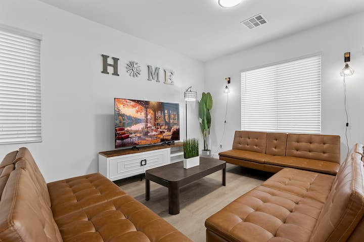 Сместен во срцето на Лас Вегас, овој сосема нов двоспратен дом се наоѓа во мирно и модерно соседство**, нудејќи совршена комбинација на удобност, практичност и современ дизајн. Без разлика дали планирате семеен одмор, деловно патување или незаборавен викенд на Појасот Лас Вегас, овој дом е тука да го подобри вашето доживување.