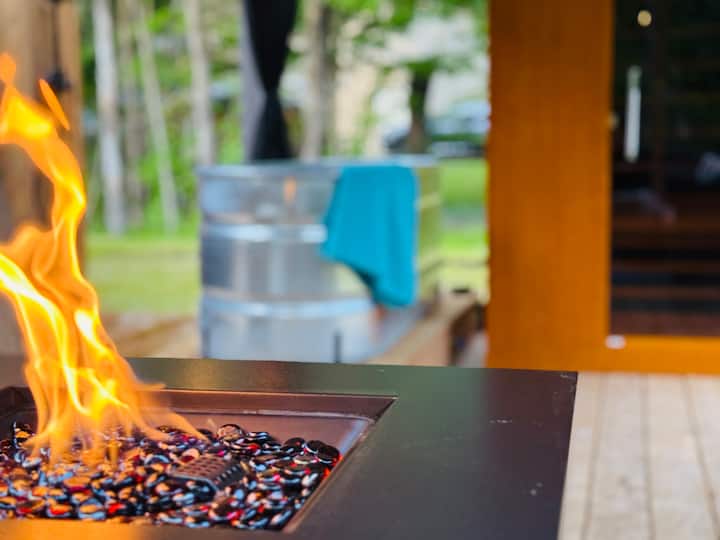 Опуштете се со надворешен туш, сауна и џакузи.