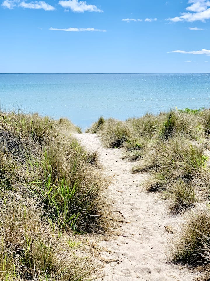 - Сместувања за одмор за изнајмување со пристап до плажа во Залив на Пленти