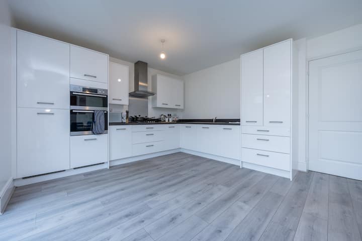 Добре дојдовте во нашиот просторен дом со 4 спални соби во Лутон, идеален за семејства или групи. Се состои од 3 двокреветни соби, 1 единечна спална соба и мајстор со сопствен апартман. Уживајте во доволно простор за складирање, семејна бања, голем салон и кујна/ресторан со отворен план со интегрирани апарати. Природната светлина поминува низ вратите на поплочениот двор, создавајќи светол, пријатен простор. Дополнителните поволности вклучуваат комунална соба, гардероба на долниот кат и доволно простор за складирање, обезбедувајќи удобен и релаксирачки престој